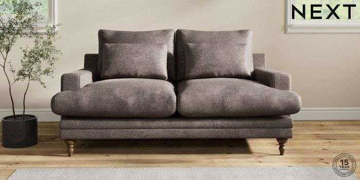 6.12.1 Buy Hutton Deep Relaxed Sit 3 Seater Small Sofa Plush Chenille Mink Brown Country Turned - Mid from the Laura Ashley online shop Click here to use our website with more accessibility support, for example screen readers