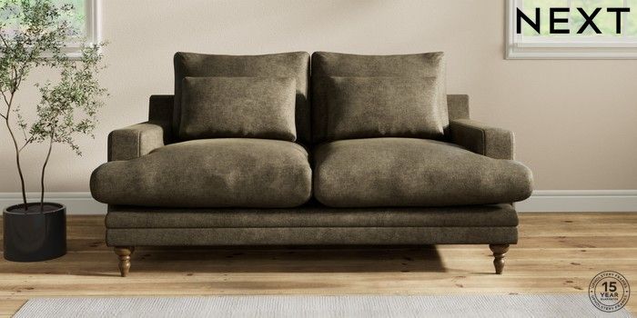 6.12.1 Buy Hutton Deep Relaxed Sit 3 Seater Small Sofa Plush Chenille Moss Green Country Turned - Mid from the Laura Ashley online shop Click here to use our website with more accessibility support, for example screen readers