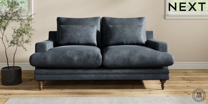 6.12.1 Buy Hutton Deep Relaxed Sit 3 Seater Small Sofa Plush Chenille Slate Blue Country Turned - Mid from the Laura Ashley online shop Click here to use our website with more accessibility support, for example screen readers