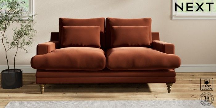 6.12.1 Buy Hutton Deep Relaxed Sit 3 Seater Small Sofa Plush Velvet Easy Clean Ginger Orange Country Turned - Mid from the Laura Ashley online shop Click here to use our website with more accessibility support, for example screen readers