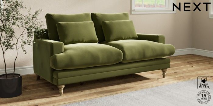 7.0.3 Buy Hutton Deep Relaxed Sit 3 Seater Small Sofa Plush Velvet Easy Clean Mid Olive Green Country Turned - Light from the Laura Ashley online shop Click here to use our website with more accessibility support, for example screen readers