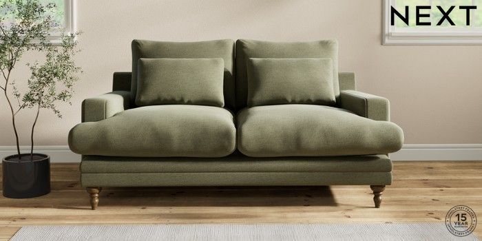 6.12.1 Buy Hutton Deep Relaxed Sit 3 Seater Small Sofa Ripple Chenille Mid Moss Green Country Turned - Mid from the Laura Ashley online shop Click here to use our website with more accessibility support, for example screen readers