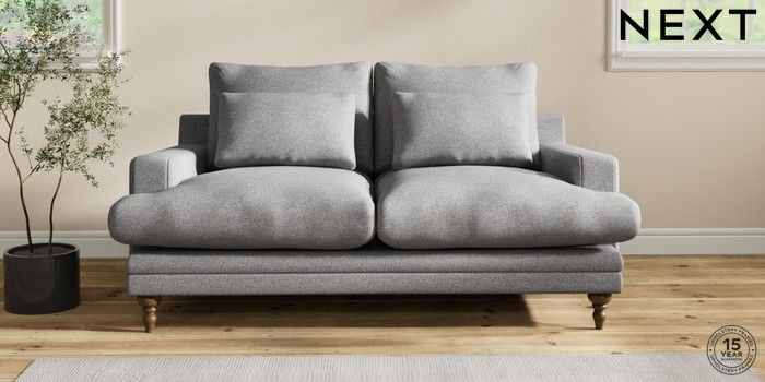 6.12.1 Buy Hutton Deep Relaxed Sit 3 Seater Small Sofa Studio Chenille Mid Grey Country Turned - Mid from the Laura Ashley online shop Click here to use our website with more accessibility support, for example screen readers