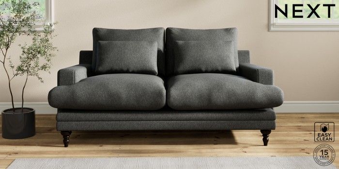 6.12.1 Buy Hutton Deep Relaxed Sit 3 Seater Small Sofa Tweedy Blend Easy Clean Charcoal Grey Country Turned - Dark from the Laura Ashley online shop Click here to use our website with more accessibility support, for example screen readers