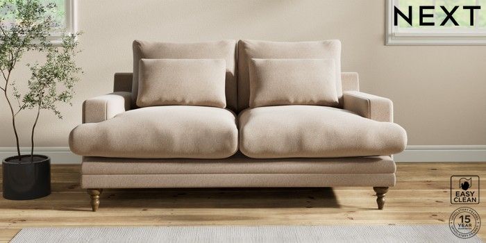 6.12.1 Buy Hutton Deep Relaxed Sit 3 Seater Small Sofa Tweedy Blend Easy Clean Light Dove Natural Country Turned - Mid from the Laura Ashley online shop Click here to use our website with more accessibility support, for example screen readers