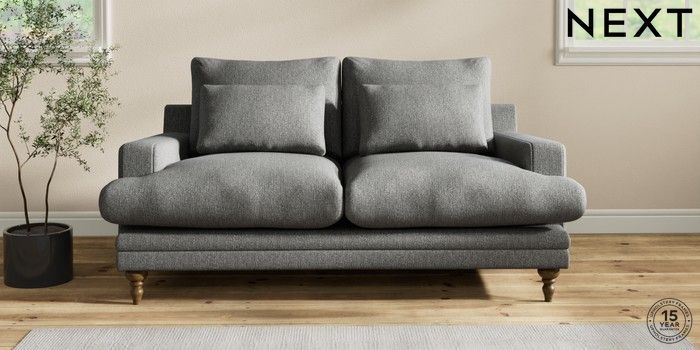 6.12.1 Buy Hutton Deep Relaxed Sit 3 Seater Small Sofa Tweedy Chenille Dark Grey Country Turned - Mid from the Laura Ashley online shop Click here to use our website with more accessibility support, for example screen readers