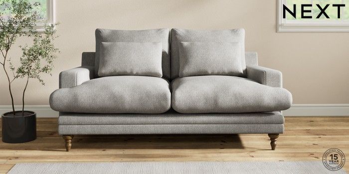 6.12.1 Buy Hutton Deep Relaxed Sit 3 Seater Small Sofa Tweedy Chenille Mid Grey Country Turned - Mid from the Laura Ashley online shop Click here to use our website with more accessibility support, for example screen readers
