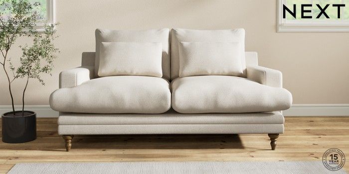6.12.1 Buy Hutton Deep Relaxed Sit 3 Seater Small Sofa Tweedy Chenille Oyster Country Turned - Mid from the Laura Ashley online shop Click here to use our website with more accessibility support, for example screen readers