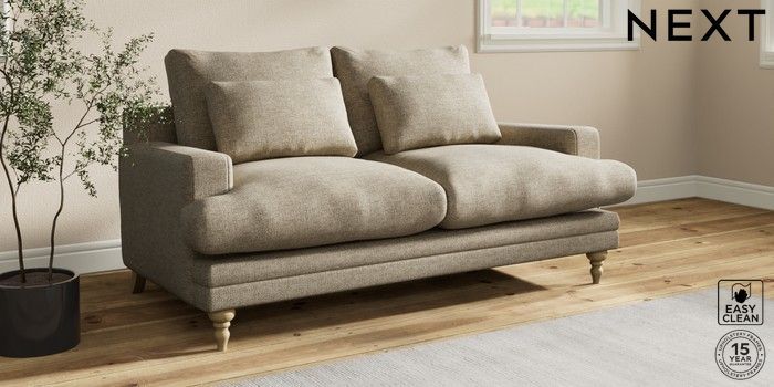 7.0.3 Buy Hutton Deep Relaxed Sit 3 Seater Small Sofa Woven Chenille Easy Clean Mid Natural Country Turned - Light from the Laura Ashley online shop Click here to use our website with more accessibility support, for example screen readers