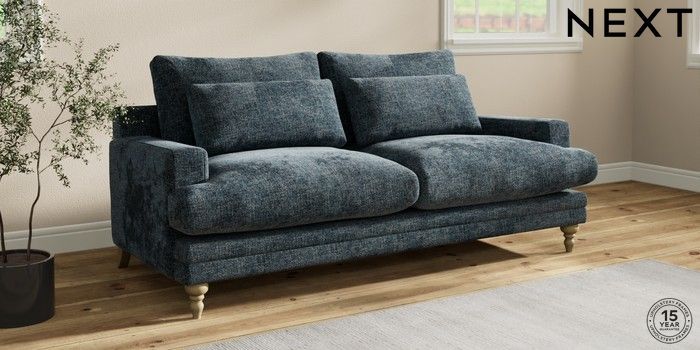 7.0.3 Buy Hutton Deep Relaxed Sit 3 Seater Sofa Chunky Chenille Dark Navy Blue Country Turned - Light from the Laura Ashley online shop Click here to use our website with more accessibility support, for example screen readers