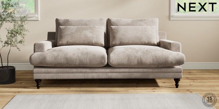 6.12.1 Buy Hutton Deep Relaxed Sit 3 Seater Sofa Chunky Chenille Light Dove Country Turned - Dark from the Laura Ashley online shop Click here to use our website with more accessibility support, for example screen readers