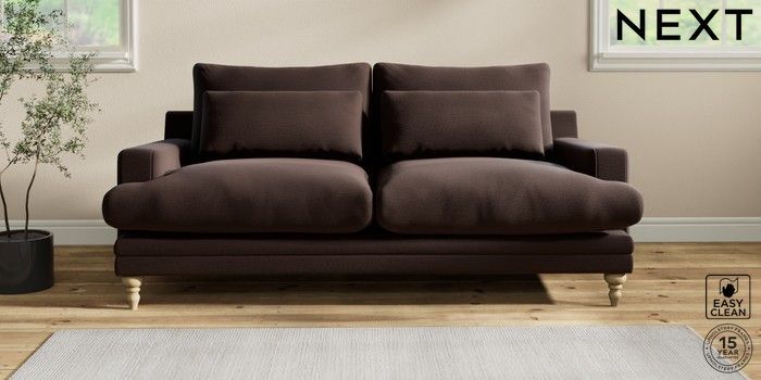 6.12.1 Buy Hutton Deep Relaxed Sit 3 Seater Sofa Fine Chenille Easy Clean Chocolate Brown Country Turned - Light from the Laura Ashley online shop Click here to use our website with more accessibility support, for example screen readers