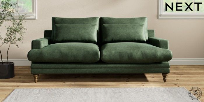 6.12.1 Buy Hutton Deep Relaxed Sit 3 Seater Sofa Luxe Chenille Dark Green Country Turned - Mid from the Laura Ashley online shop Click here to use our website with more accessibility support, for example screen readers