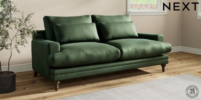 7.0.3 Buy Hutton Deep Relaxed Sit 3 Seater Sofa Luxe Chenille Dark Green Country Turned - Mid from the Laura Ashley online shop Click here to use our website with more accessibility support, for example screen readers