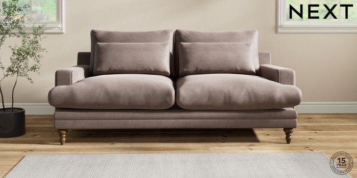 6.12.1 Buy Hutton Deep Relaxed Sit 3 Seater Sofa Luxe Chenille Mink Brown Country Turned - Mid from the Laura Ashley online shop Click here to use our website with more accessibility support, for example screen readers
