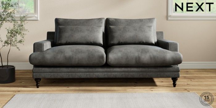 6.12.1 Buy Hutton Deep Relaxed Sit 3 Seater Sofa Monza Faux Leather Easy Clean Dark Grey Country Turned - Dark from the Laura Ashley online shop Click here to use our website with more accessibility support, for example screen readers