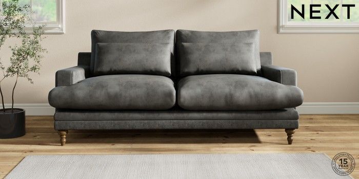 6.12.1 Buy Hutton Deep Relaxed Sit 3 Seater Sofa Monza Faux Leather Easy Clean Dark Grey Country Turned - Mid from the Laura Ashley online shop Click here to use our website with more accessibility support, for example screen readers