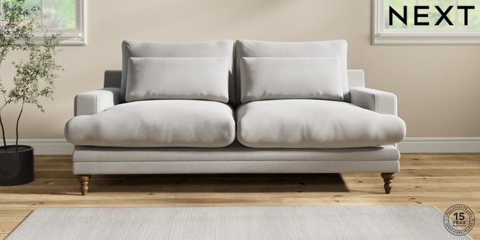6.12.1 Buy Hutton Deep Relaxed Sit 3 Seater Sofa Natural Mix Light Grey Country Turned - Mid from the Laura Ashley online shop Click here to use our website with more accessibility support, for example screen readers