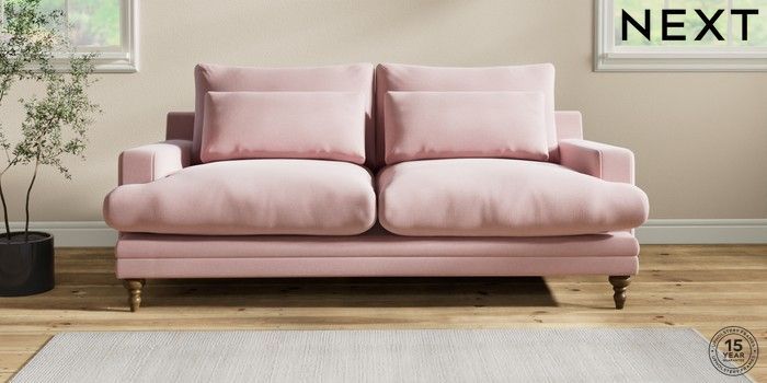 6.12.1 Buy Hutton Deep Relaxed Sit 3 Seater Sofa Natural Mix Light Rose Pink Country Turned - Mid from the Laura Ashley online shop Click here to use our website with more accessibility support, for example screen readers