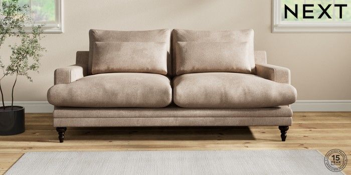 6.12.1 Buy Hutton Deep Relaxed Sit 3 Seater Sofa Plush Chenille Mid Natural Country Turned - Dark from the Laura Ashley online shop Click here to use our website with more accessibility support, for example screen readers