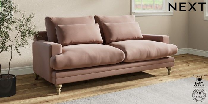 7.0.3 Buy Hutton Deep Relaxed Sit 3 Seater Sofa Plush Velvet Easy Clean Mid Natural Country Turned - Light from the Laura Ashley online shop Click here to use our website with more accessibility support, for example screen readers