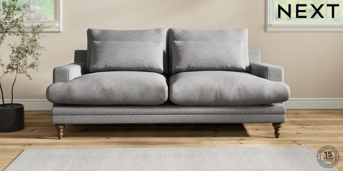 6.12.1 Buy Hutton Deep Relaxed Sit 3 Seater Sofa Studio Chenille Mid Grey Country Turned - Mid from the Laura Ashley online shop Click here to use our website with more accessibility support, for example screen readers