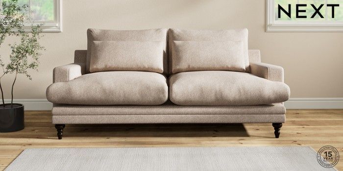 6.12.1 Buy Hutton Deep Relaxed Sit 3 Seater Sofa Tweedy Chenille Mid Natural Country Turned - Dark from the Laura Ashley online shop Click here to use our website with more accessibility support, for example screen readers