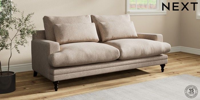 7.0.3 Buy Hutton Deep Relaxed Sit 3 Seater Sofa Tweedy Chenille Mid Natural Country Turned - Dark from the Laura Ashley online shop Click here to use our website with more accessibility support, for example screen readers