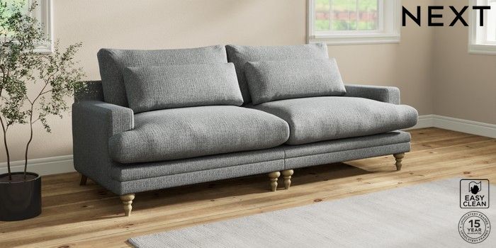7.0.3 Buy Hutton Deep Relaxed Sit 4 Seater Sofa Chunky Boucle Easy Clean Mid Grey Country Turned - Light from the Laura Ashley online shop Click here to use our website with more accessibility support, for example screen readers