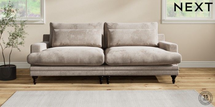 6.12.1 Buy Hutton Deep Relaxed Sit 4 Seater Sofa Chunky Chenille Light Dove Country Turned - Dark from the Laura Ashley online shop Click here to use our website with more accessibility support, for example screen readers