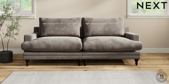 6.12.1 Buy Hutton Deep Relaxed Sit 4 Seater Sofa Chunky Chenille Mink Brown Country Turned - Dark from the Laura Ashley online shop Click here to use our website with more accessibility support, for example screen readers
