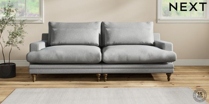 6.12.1 Buy Hutton Deep Relaxed Sit 4 Seater Sofa Chunky Weave Mid Grey Country Turned - Mid from the Laura Ashley online shop Click here to use our website with more accessibility support, for example screen readers