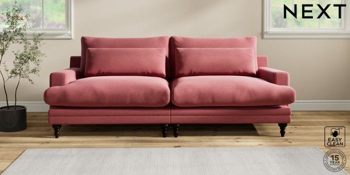 6.12.1 Buy Hutton Deep Relaxed Sit 4 Seater Sofa Fine Chenille Easy Clean Mid Pink Country Turned - Dark from the Laura Ashley online shop Click here to use our website with more accessibility support, for example screen readers