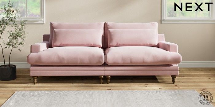 6.12.1 Buy Hutton Deep Relaxed Sit 4 Seater Sofa Natural Mix Light Rose Pink Country Turned - Mid from the Laura Ashley online shop Click here to use our website with more accessibility support, for example screen readers