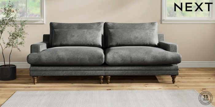 6.12.1 Buy Hutton Deep Relaxed Sit 4 Seater Sofa Plush Chenille Dark Grey Country Turned - Mid from the Laura Ashley online shop Click here to use our website with more accessibility support, for example screen readers