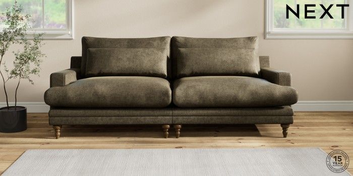 6.12.1 Buy Hutton Deep Relaxed Sit 4 Seater Sofa Plush Chenille Moss Green Country Turned - Mid from the Laura Ashley online shop Click here to use our website with more accessibility support, for example screen readers