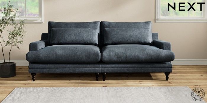 6.12.1 Buy Hutton Deep Relaxed Sit 4 Seater Sofa Plush Chenille Slate Blue Country Turned - Dark from the Laura Ashley online shop Click here to use our website with more accessibility support, for example screen readers