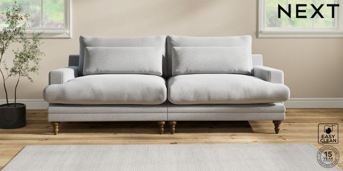 6.12.1 Buy Hutton Deep Relaxed Sit 4 Seater Sofa Tweedy Blend Easy Clean Light Silver Grey Country Turned - Mid from the Laura Ashley online shop Click here to use our website with more accessibility support, for example screen readers
