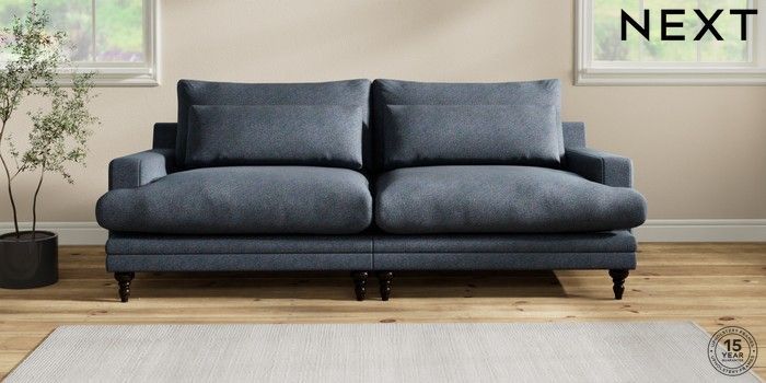 6.12.1 Buy Hutton Deep Relaxed Sit 4 Seater Sofa Tweedy Chenille Navy Blue Country Turned - Dark from the Laura Ashley online shop Click here to use our website with more accessibility support, for example screen readers