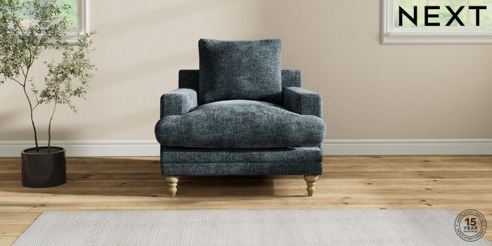 6.12.1 Buy Hutton Deep Relaxed Sit Armchair Chunky Chenille Dark Navy Blue Country Turned - Light from the Laura Ashley online shop Click here to use our website with more accessibility support, for example screen readers