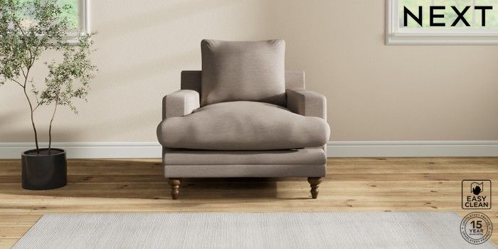 6.12.1 Buy Hutton Deep Relaxed Sit Armchair Fine Chenille Easy Clean Mid Taupe Brown Country Turned - Mid from the Laura Ashley online shop Click here to use our website with more accessibility support, for example screen readers