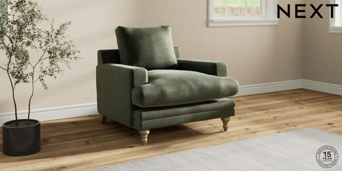 7.0.3 Buy Hutton Deep Relaxed Sit Armchair Luxe Chenille Mid Green Country Turned - Light from the Laura Ashley online shop Click here to use our website with more accessibility support, for example screen readers