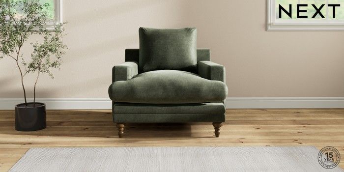 6.12.1 Buy Hutton Deep Relaxed Sit Armchair Luxe Chenille Mid Green Country Turned - Mid from the Laura Ashley online shop Click here to use our website with more accessibility support, for example screen readers