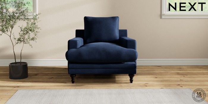 6.12.1 Buy Hutton Deep Relaxed Sit Armchair Luxe Chenille Navy Blue Country Turned - Dark from the Laura Ashley online shop Click here to use our website with more accessibility support, for example screen readers