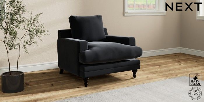 7.0.3 Buy Hutton Deep Relaxed Sit Armchair Plush Velvet Easy Clean Charcoal Grey Country Turned - Dark from the Laura Ashley online shop Click here to use our website with more accessibility support, for example screen readers