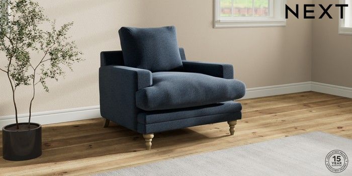 7.0.3 Buy Hutton Deep Relaxed Sit Armchair Ripple Chenille Dark Blue Country Turned - Light from the Laura Ashley online shop Click here to use our website with more accessibility support, for example screen readers