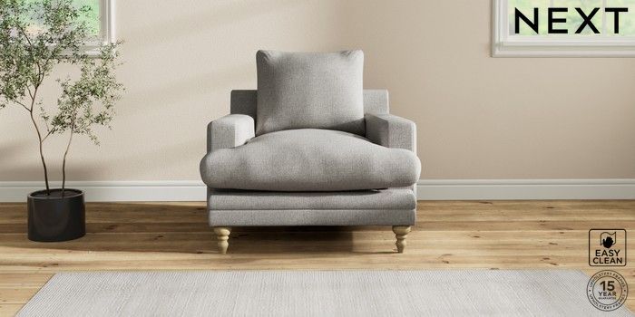 6.12.1 Buy Hutton Deep Relaxed Sit Armchair Woven Chenille Easy Clean Light Grey Country Turned - Light from the Laura Ashley online shop Click here to use our website with more accessibility support, for example screen readers