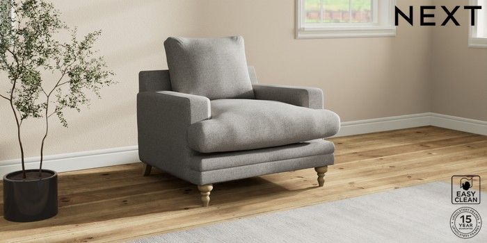 7.0.3 Buy Hutton Deep Relaxed Sit Armchair Woven Chenille Easy Clean Light Grey Country Turned - Light from the Laura Ashley online shop Click here to use our website with more accessibility support, for example screen readers
