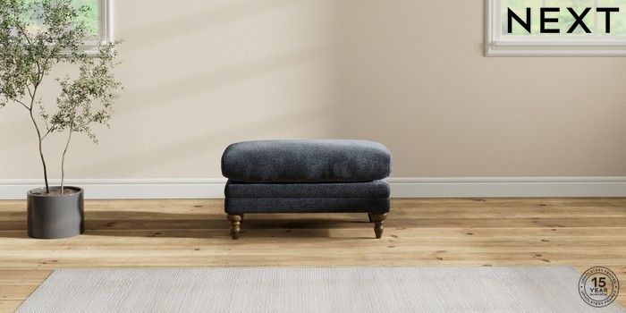 6.12.1 Buy Hutton Deep Relaxed Sit Footstool Boucle Chenille Dark Slate Blue High Turned - Mid from the Laura Ashley online shop Click here to use our website with more accessibility support, for example screen readers