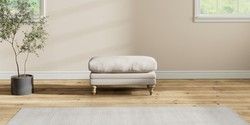 6.12.1 Buy Hutton Deep Relaxed Sit Footstool Chenille Stripe Natural High Turned - Light from the Laura Ashley online shop Click here to use our website with more accessibility support, for example screen readers